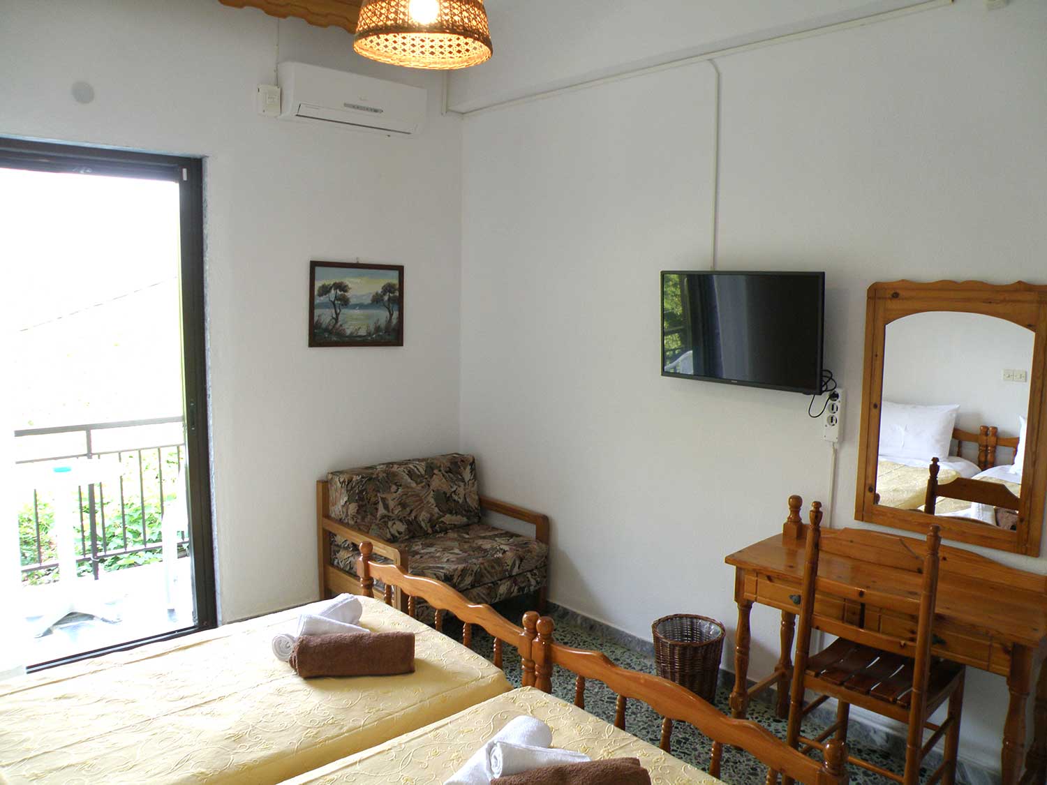 Τα δίκλινα δωμάτια στο ισόγειο της Villa Dimitra είναι μια πρακτική και ευχάριστη επιλογή για όσους αναζητούν απλή και άνετη διαμονή στη Θάσο. Διαθέτουν τις βασικές παροχές που χρειάζεστε για ξέγνοιαστες μέρες στη Σκάλα Ποταμιάς, ενώ η πρόσβαση στον κήπο και η χαλαρή ατμόσφαιρα της μονάδας κάνουν την καθημερινότητα ακόμα πιο ξεκούραστη.